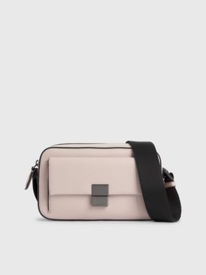 Das Außenmaterial der Crossbody Bag besteht zu 51% aus recyceltem Polyester und zu 49% aus wasserbasiertem Polyurethan, mit Ausnahme des Besatzes.