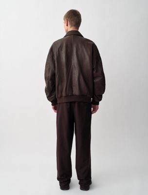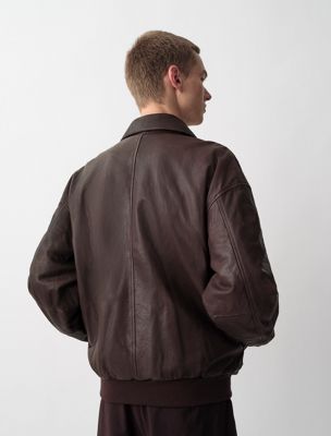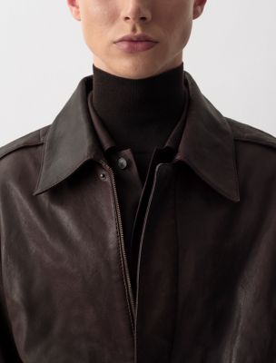 Eine von der Fliegerei inspirierte Jacke aus 100 % vollnarbigem Leder. Mit konturierten Nähten, einer verdeckten Knopfleiste und durchgehendem Reißverschluss.